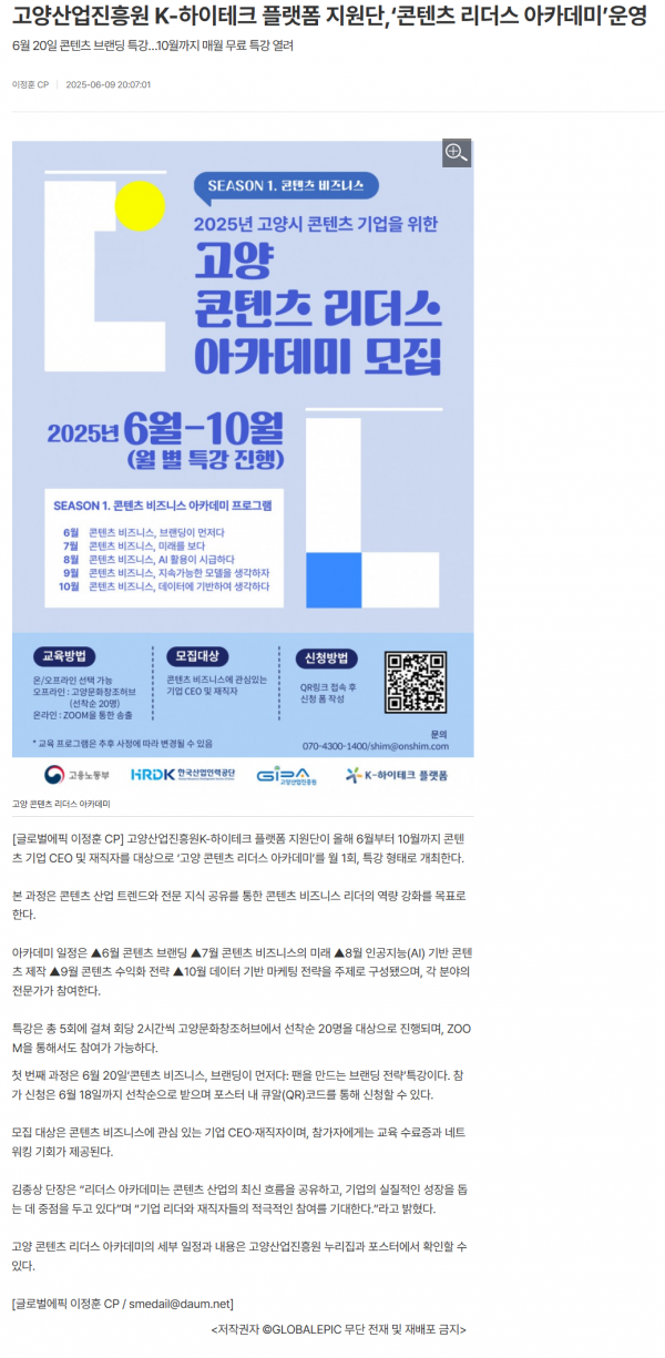 보도일 : 25-06-09 언론매체 : 글로벌에픽