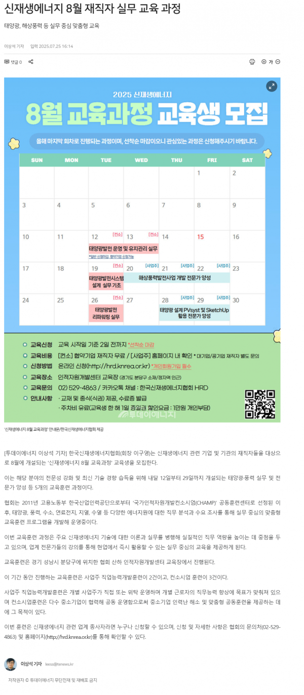 보도일 : 25-07-25 언론매체 : 투데이에너지