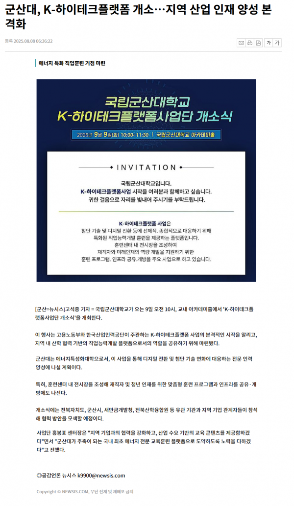 군산대, K-하이테크플랫폼 개소…지역 산업 인재 양성 본격화