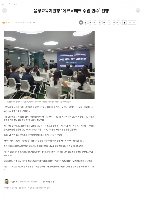 음성교육지원청 ‘에코×테크 수업 연수’ 진행