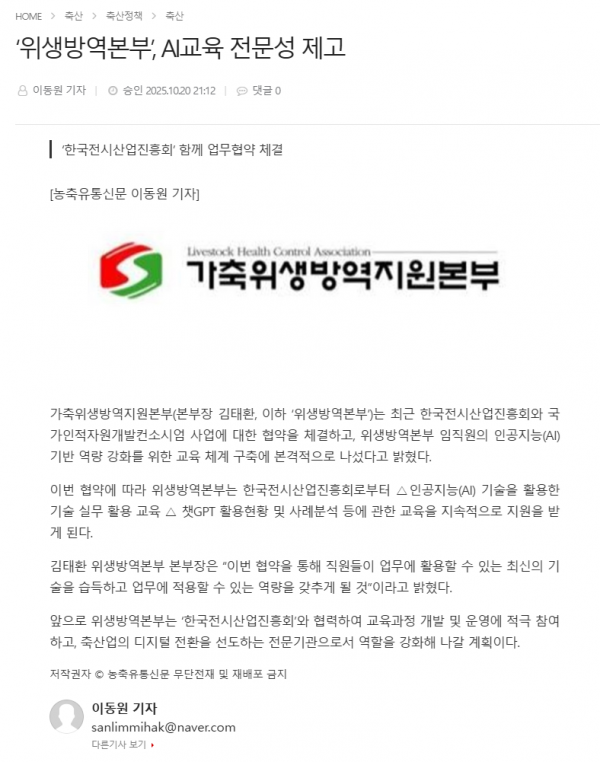 보도일 : 25-10-20 언론매체 : 농축유통신문